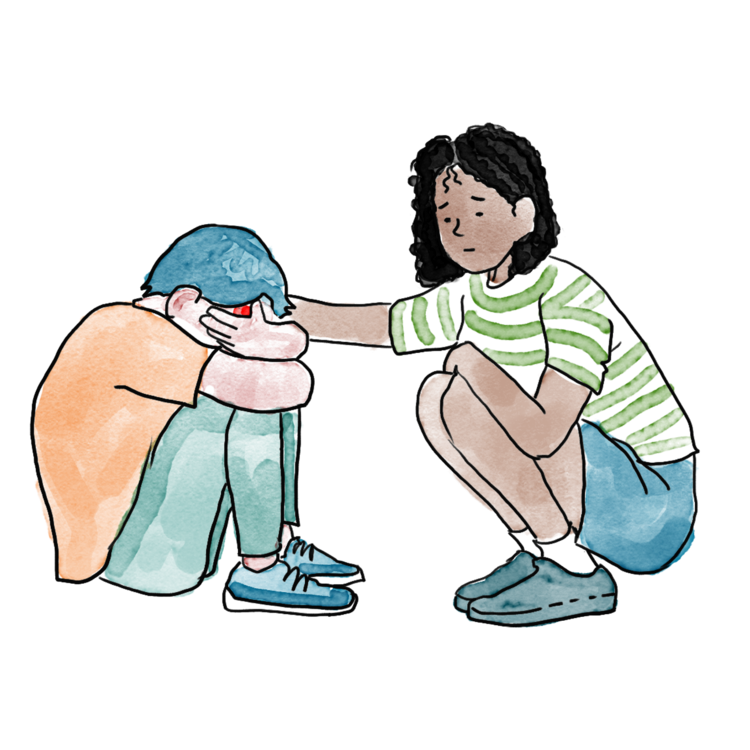 Auch bei kleinen Wunden gehört es zur Ersten Hilfe, die betroffene Person zu trösten und zu gucken, dass sie sich so wohl wie möglich fühlt.